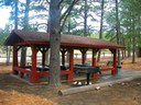 The lower picnic area is just right for company picnics and extended family gatherings. It has a large shelter and shaded tables. Restrooms, water, and electricity are available.