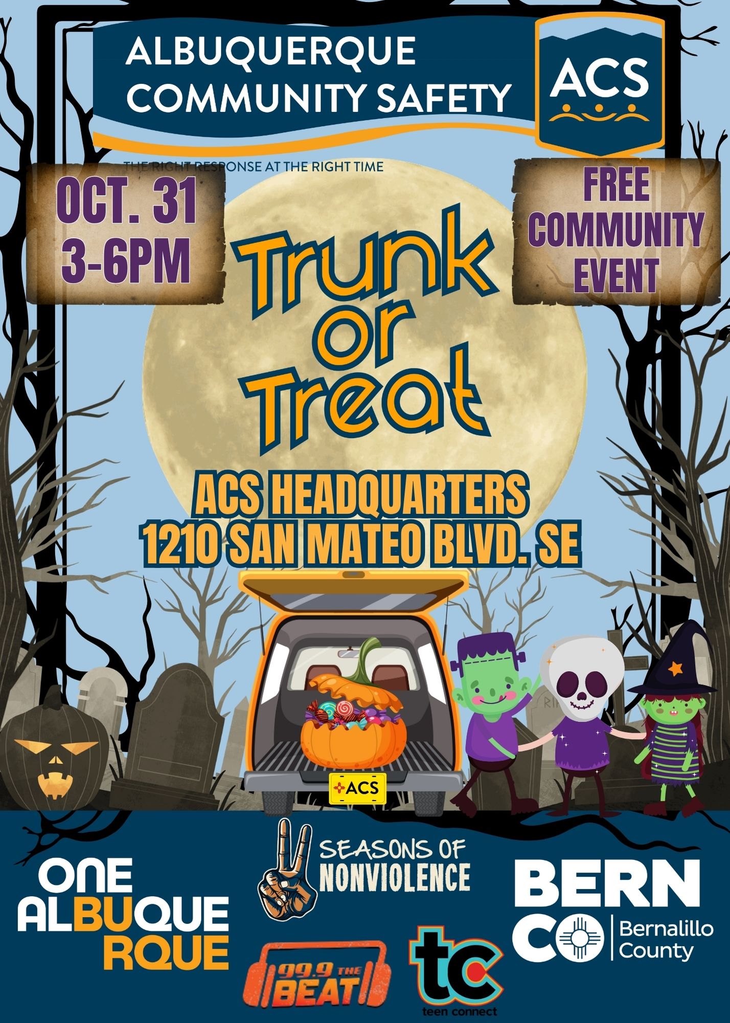 Join Albuquerque Community Safety, city partners and local providers for the second annual ACS Trunk of Treat.