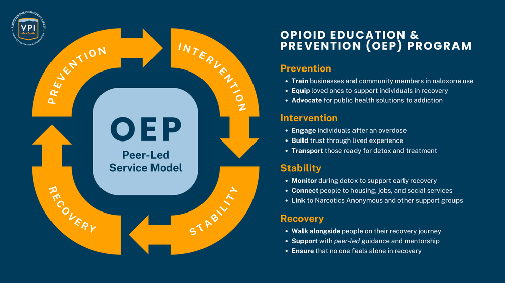 The program partners with Albuquerque Fire Rescue (AFR), ACS Behavioral Health Responders, and local organizations to reach individuals at critical moments—often right after an overdose—when they may be most open to support. Whether offering a ride to treatment, checking in during early recovery, or providing resources to families, OEP ensures that no one has to navigate addiction alone.