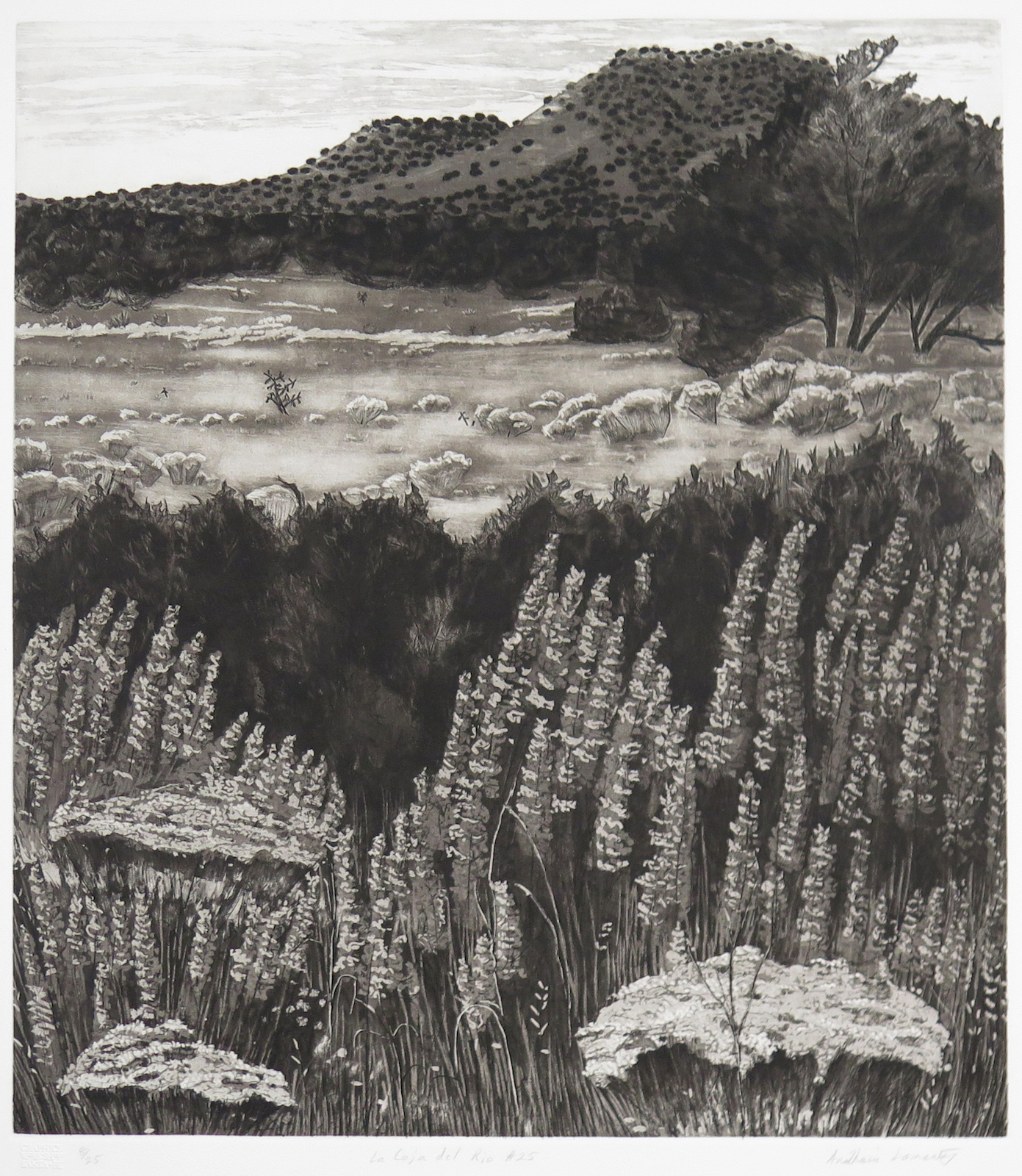 AnaMaria Samaniego born 1961 New Mexico; lives Santa Fe, New Mexico La Caja del Rio #24 date etching and aquatint 19 ⅝ x 17 ½ in. gift of James Evans PC2019.25.18