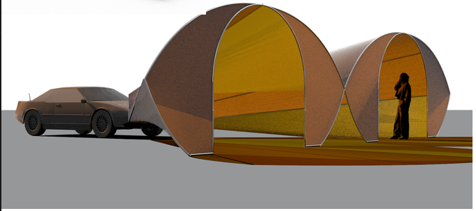 Description: Roberts' site-specific installation transforms a salvaged vehicle into a radiant, light-driven sculpture. Using the car's frame and lighting elements, the work refracts and diffuses light into fields of neon, reflection, and shadow. When activated, the headlights and embedded LEDs ignite the piece, casting shifting patterns across its surfaces and surrounding space. Referencing Albuquerque's deep connection to the automobile and Route 66, the work layers nostalgia with contemporary light-based intervention. From a distance, it reads as a glowing beacon. Up close, it frames the body and invites movement through it, creating a moment of pause, gathering, and relative safety within the urban environment.