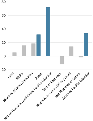 Percent Change in Population from 2010 to 2020, by Race alone or in combination with one or more races.