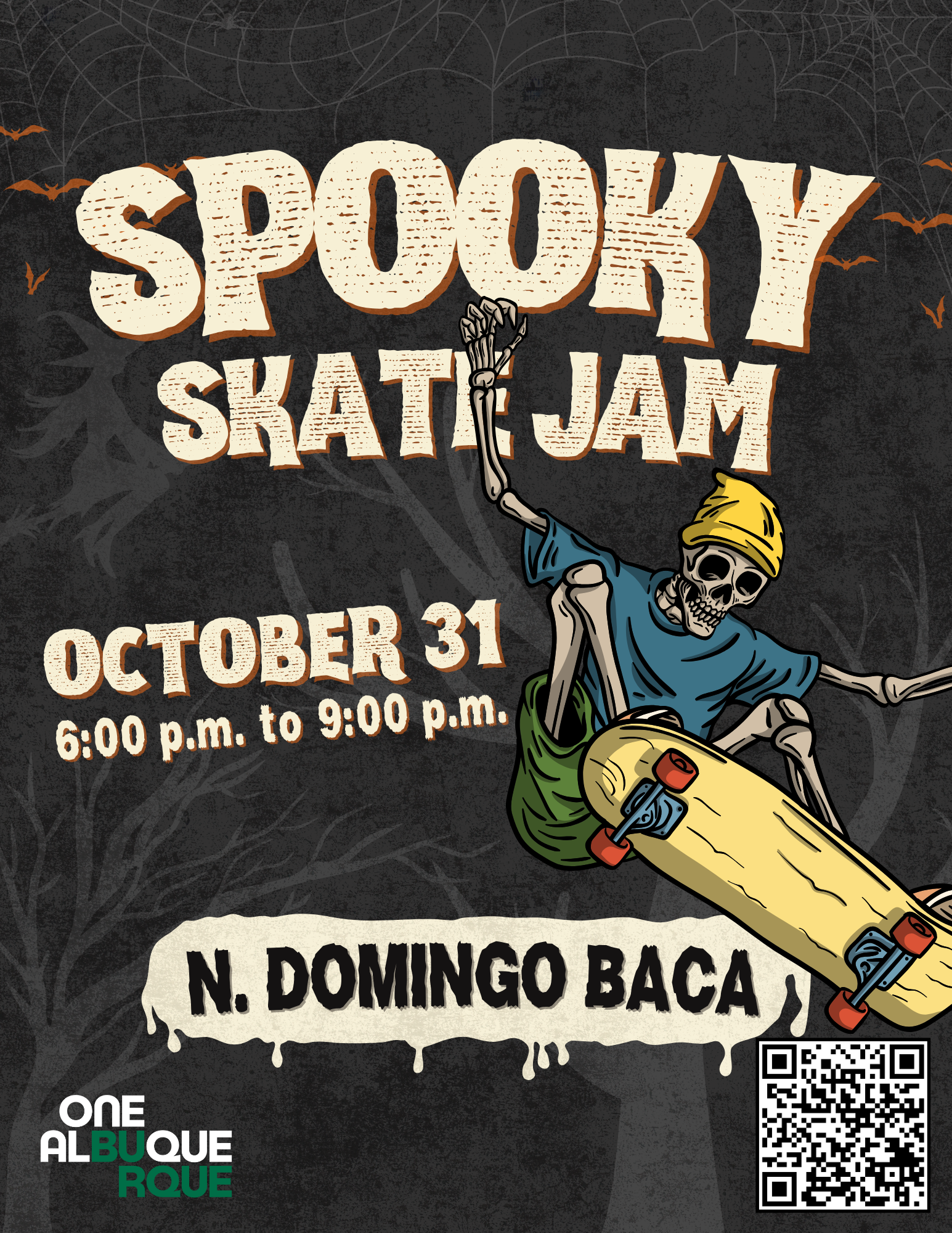 Dare to drop in under the moonlight? Join us for a spine-chilling night of tricks, treats, and thrills at the Spooky Skate Jam! This haunted hangout is the perfect place to skate your heart out—or scare it out.