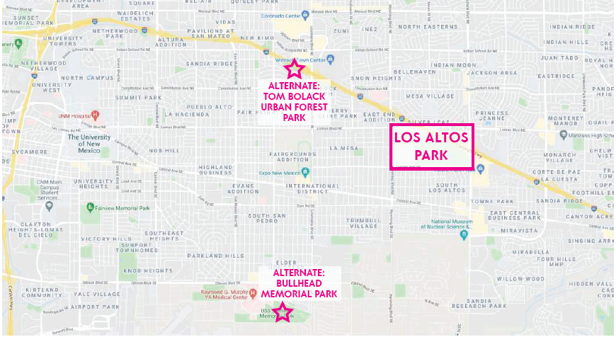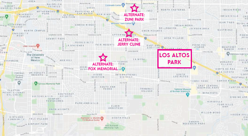 - Continuation of improved vehicle access loop to new primary signalized park entrance and Lomas Blvd. NE and Easterday Dr. NE