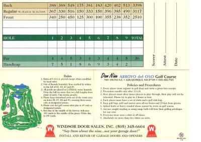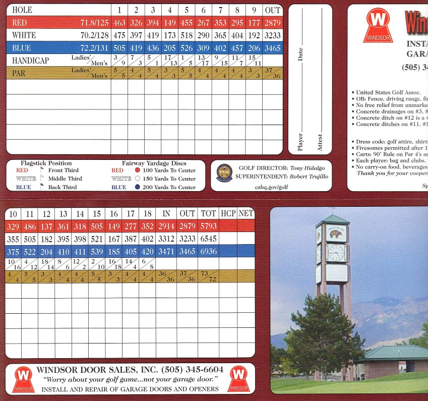 Arroyo del Oso's primary course is 6,545 yards Par 72 for men, and 6,015 yards Par 73 for women.
