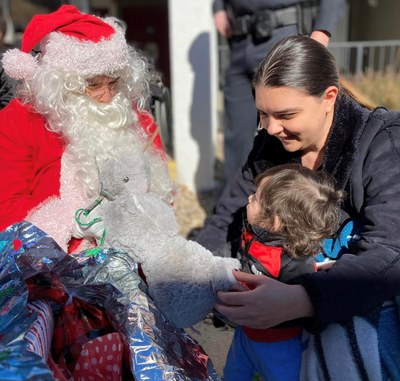 APD's Community Engagement Unit joined Victory Outreach of Albuquerque and Family Life Radio to bring gifts, hot chocolate, and pictures with Santa to families across southeast Albuquerque. Volunteers and officers gave out hundreds of toys, gloves, and hats to kids.