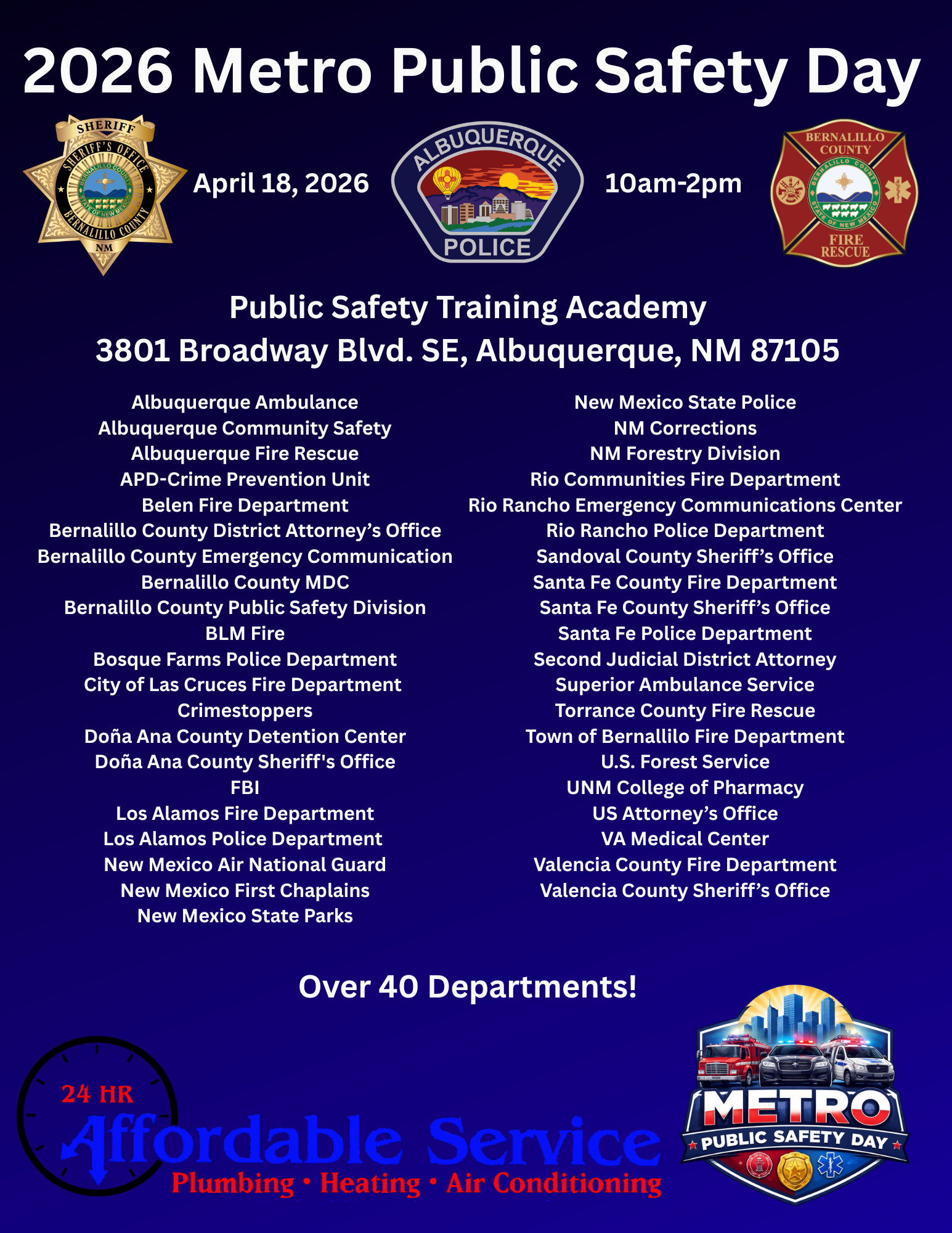 24 Affordable Service is proud to host the 2026 Metro Public Safety Day, bringing our community together with the heroes who help keep Albuquerque safe.