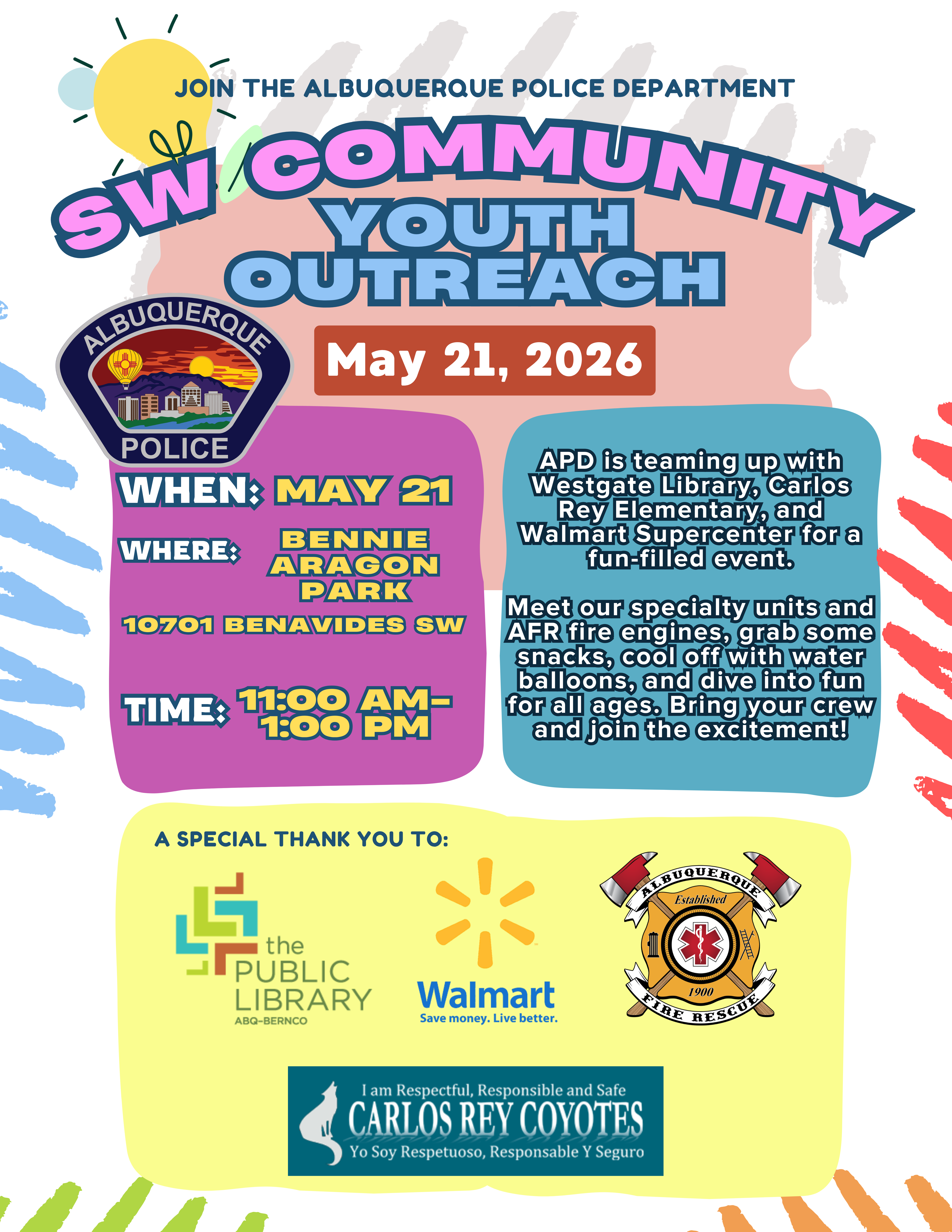 APD is teaming up with Westgate Library, Carlos Rey Elementary, and Walmart Supercenter for a fun-filled event.