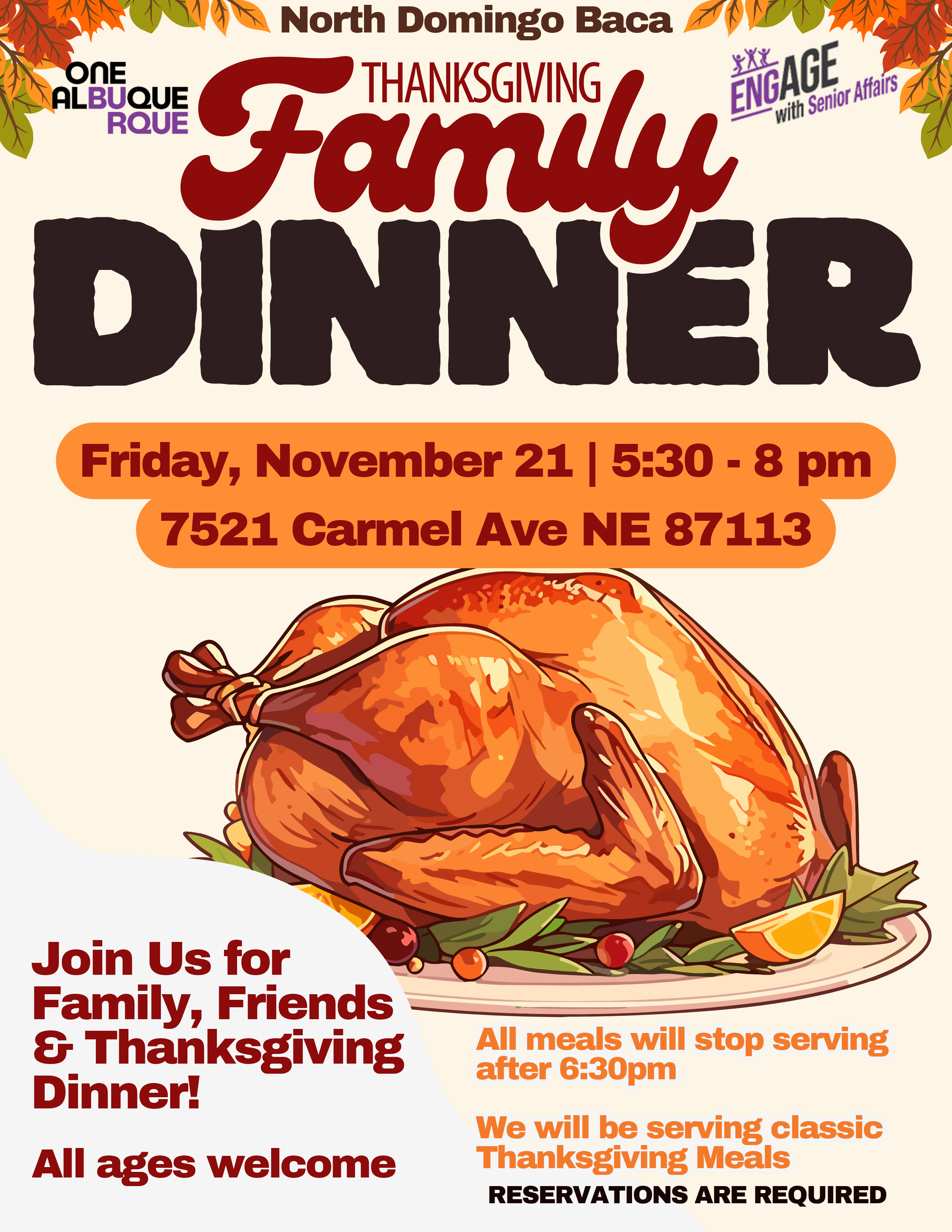 Join us on November 21, 2025 for Family Dinner Night at North Domingo Baca Multigenerational Center.