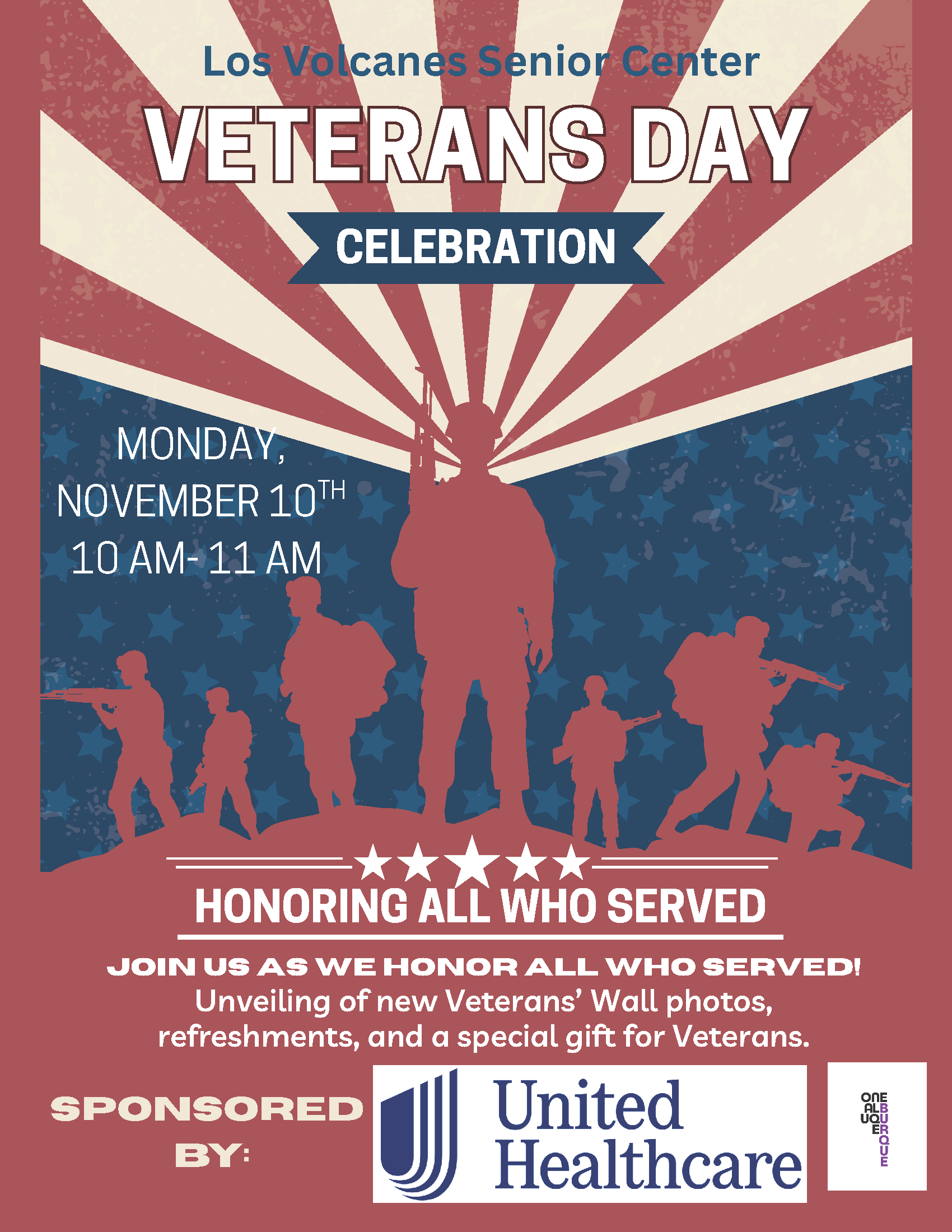 Join us at Los Volcanes Senior Center on Monday, November 10, 2025 as we honor our veterans and unveil new Veterans Wall photos!