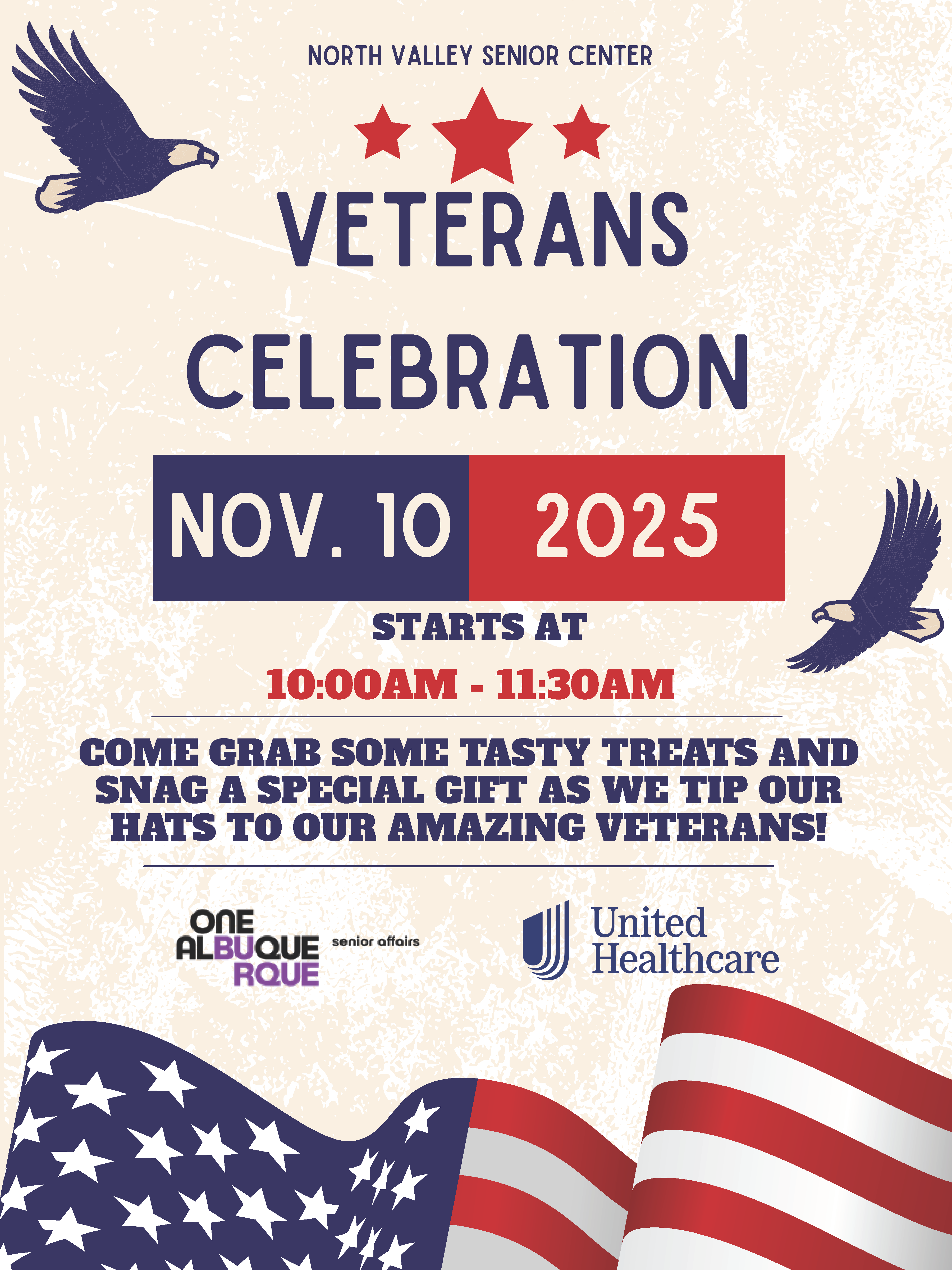Join us at North Valley Senior Center on Monday, November 10, 2025 as we honor our veterans.