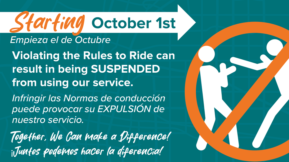 On October 1, 2024, ABQ RIDE launched its first Suspension Policy to ensure a safe and secure transit system for all ABQ RIDE employees, passengers, and visitors. Any violation of the Rules to Ride can result in being suspended from transit services.